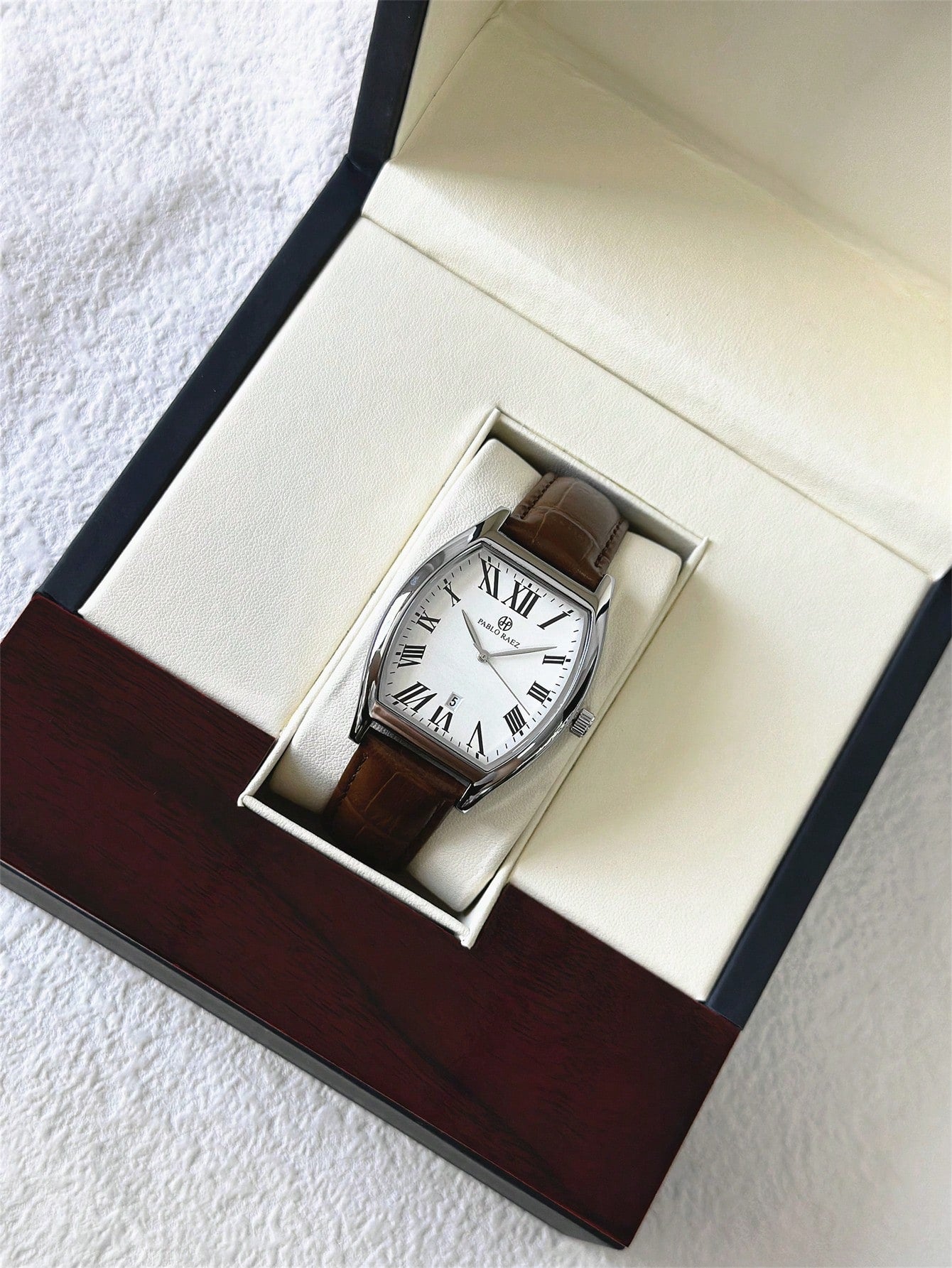 Der Pablo Raez Herren-Armbanduhr ist ein modernes Sommeraccessoire, das Eleganz und Funktionalität vereint. Mit seinem einzigartigen Tonnen-/Barrel-Design und einem hochwertigen AAA-Edelstahlarmband bietet dieser Zeitmesser einen luxuriösen und zugleich sportlichen Look.